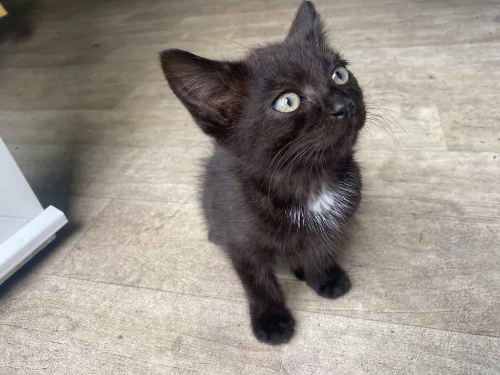 This adorable ten-week-old male kitten is affectionate, sociable, and already litter trained. He’s well accustomed to people and thrives on attention and companionship. With his sweet nature and readiness for a loving home, he’s the purr-fect addition to any family.