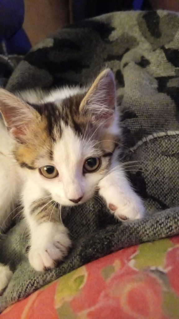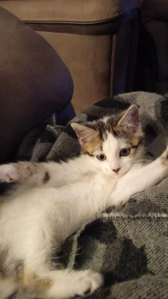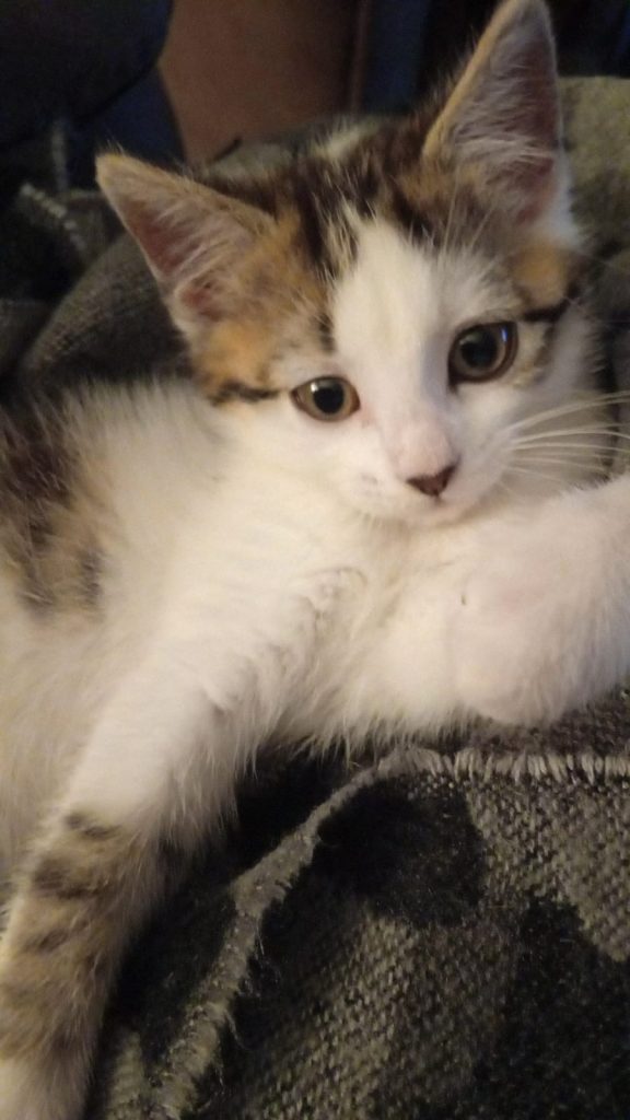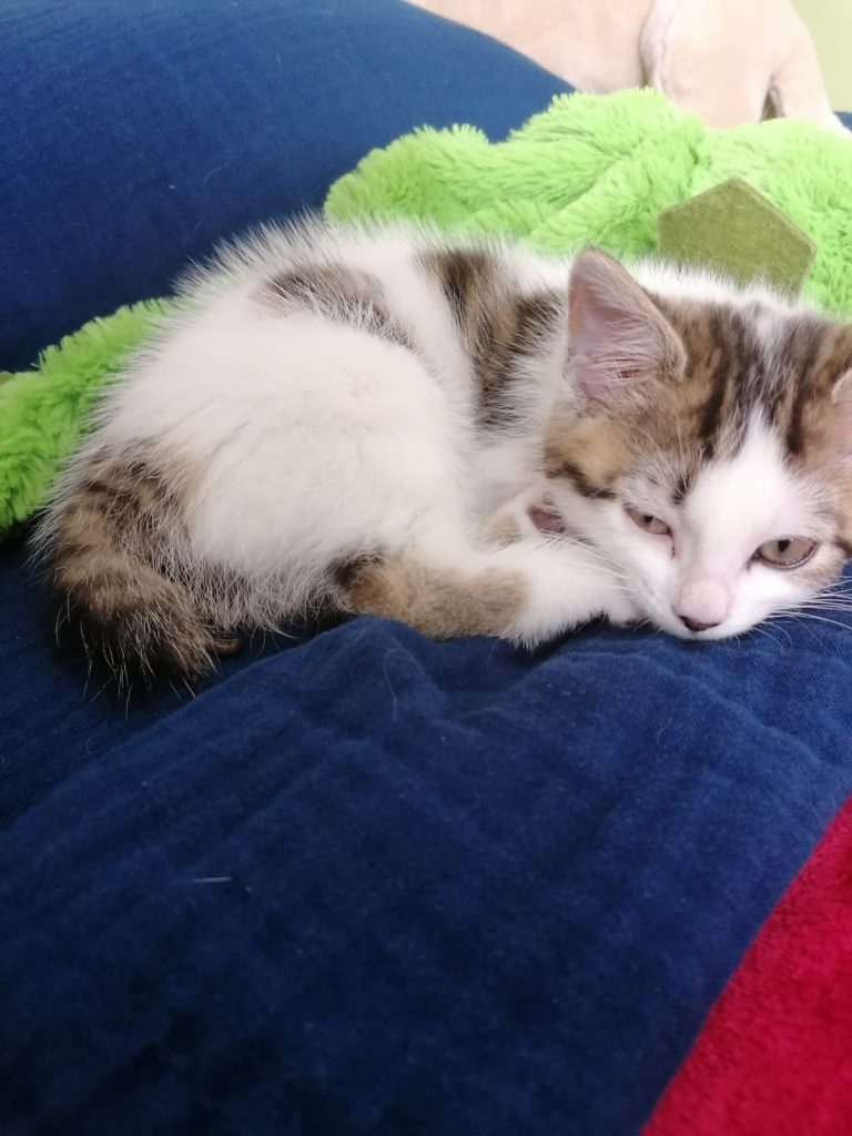 Meet Stu! This fearless little adventurer is a male kitten, roughly eight weeks old. He’s a whirlwind of energy—playful, curious, and always up for a game. Stu’s mischievous spirit is matched by his fluffy charm, and when all that fun tires him out, he’ll happily snuggle up for a cosy nap. Stu may be missing most of his tail—just a tiny tuft of about 1.5 inches remains—but that doesn’t hold him back in the slightest. His playful spirit and endless energy more than make up for it, and the issue will be tended to when he’s neutered.