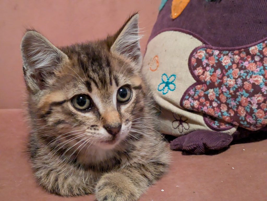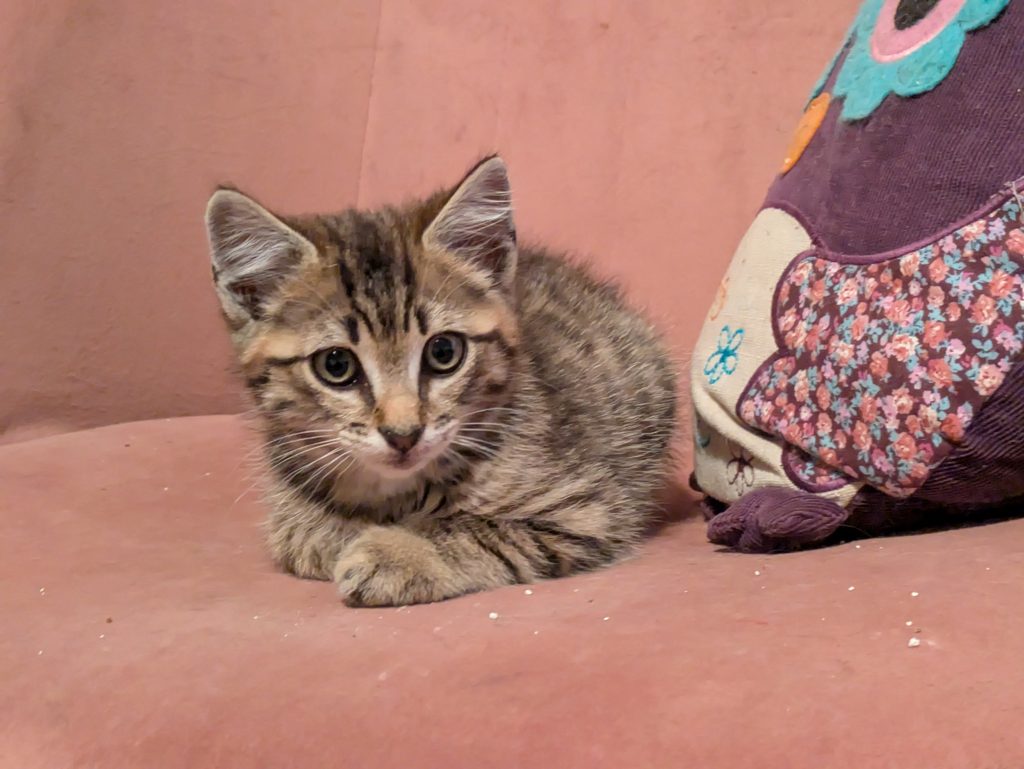 Bracken is a sweet and gentle male tabby with a soft, quiet nature that makes him easy to fall in love with. While he may be reserved at first, this little guy absolutely lights up during playtime with his foster siblings and gets along wonderfully with the resident cats—and even the family dog! Bracken has a playful spirit beneath his calm exterior, often chasing toys or joining in a friendly game of tag with his furry companions. He’s the perfect mix of peaceful and playful, and would thrive in a home with other pets to keep him company.