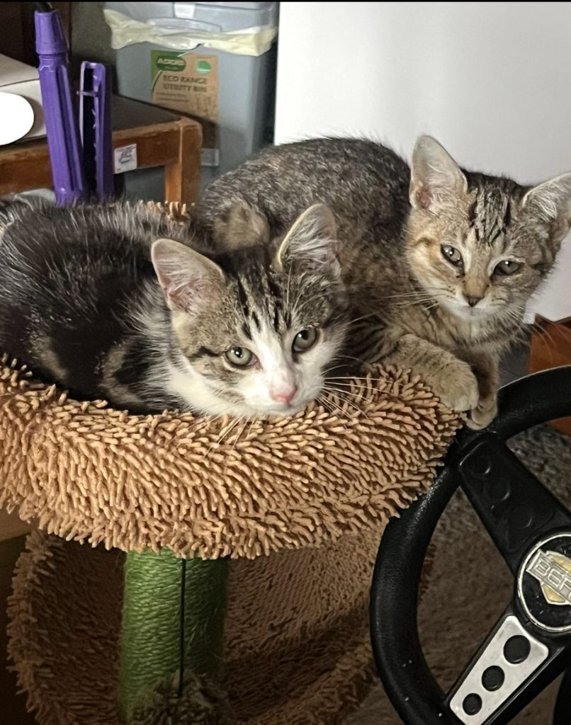 Fred and Wilma are a pair of 12-week-old siblings with a double scoop of sweetness and a sprinkle of silliness! They love chasing each other around, climbing trees, and sharing gentle cuddles. Wilma adores her brother, and Fred is especially fond of belly tickles — he’ll roll over in a heartbeat for them!