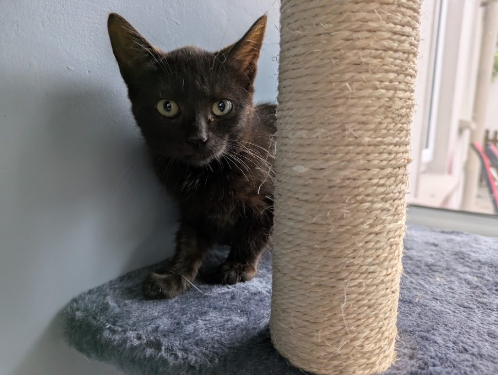 Bella is an 8-week-old kitten with a sweet and gentle nature. She can be a little shy at first, preferring to take her time getting to know new people and new surroundings. Once she feels safe, her playful side begins to shine through, and you can see the curious kitten she’s growing into.