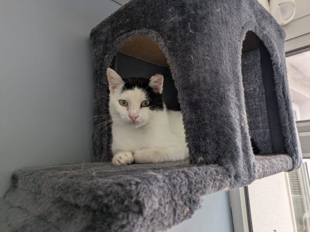 Buster is a handsome 1.5-year-old neutered boy who’s ready to find a loving home. He is fully litter trained and comfortable both indoors and outdoors, making him an easy companion to settle into your life.