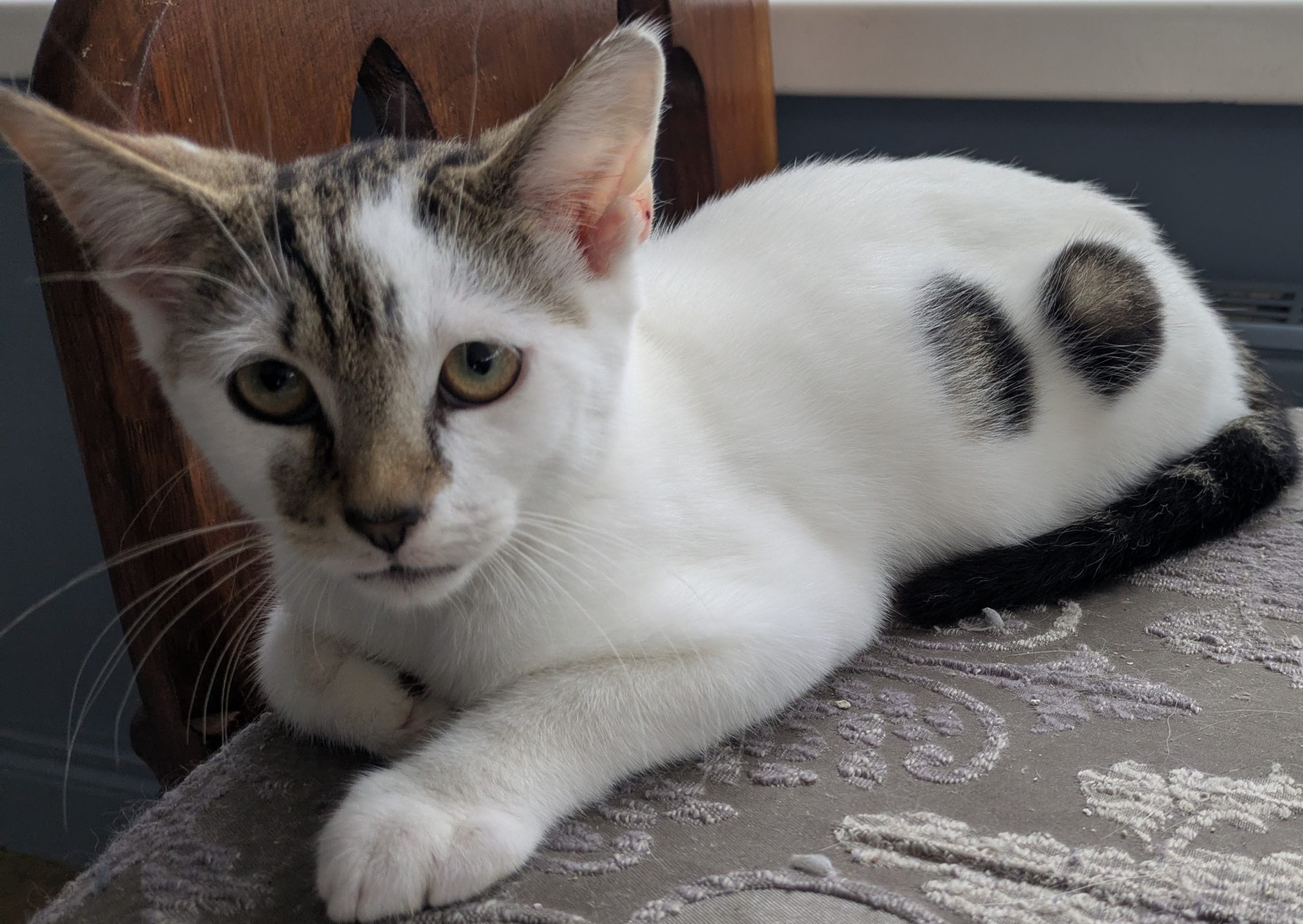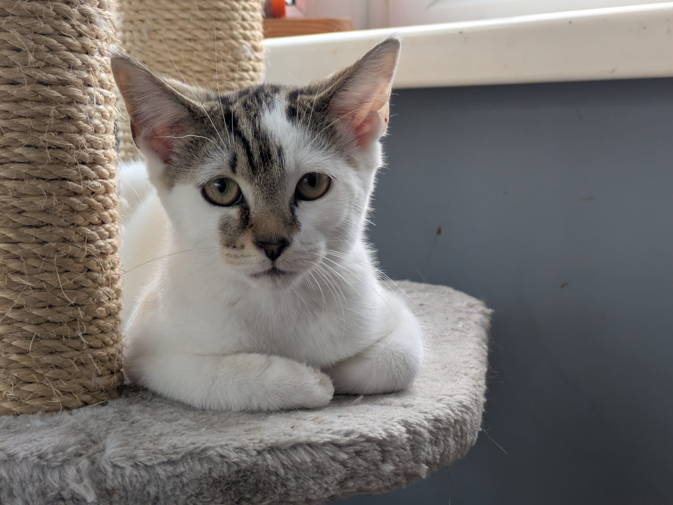 Scout can be a little slow to come forward for attention, but he won’t hesitate to climb into your lap when you bring out his favourite creamy treats. He’s an independent little character who will thrive in a home that can give him patience, playtime, and of course, a steady supply of tasty rewards.