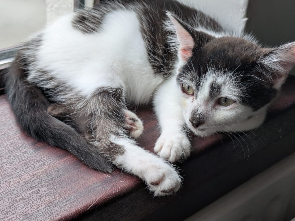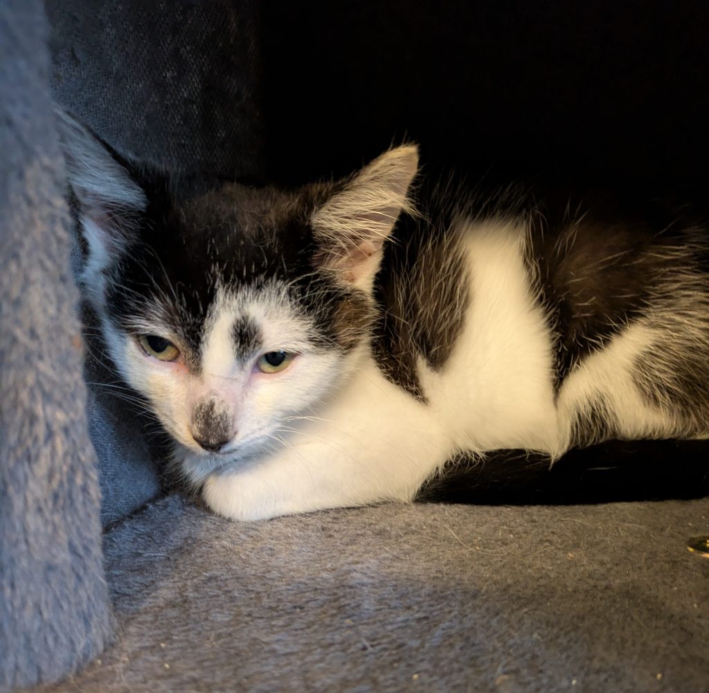 Noah is a handsome 10-week-old black-and-white male kitten who is already fully litter trained and ready to find his forever home.