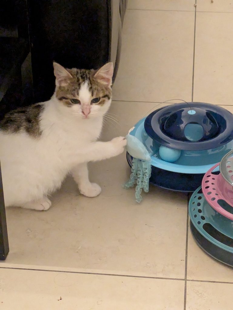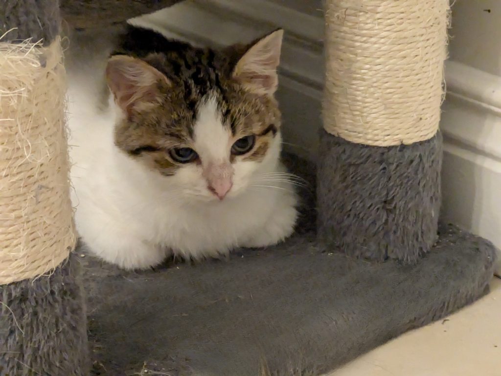 Milo is a 9-week-old male kitten who is fully litter trained and loves to entertain himself with his toys. He can be nervous around people at first and will need a calm, patient home to help him build confidence. With time and gentle encouragement, he’s sure to come out of his shell and show his playful side.