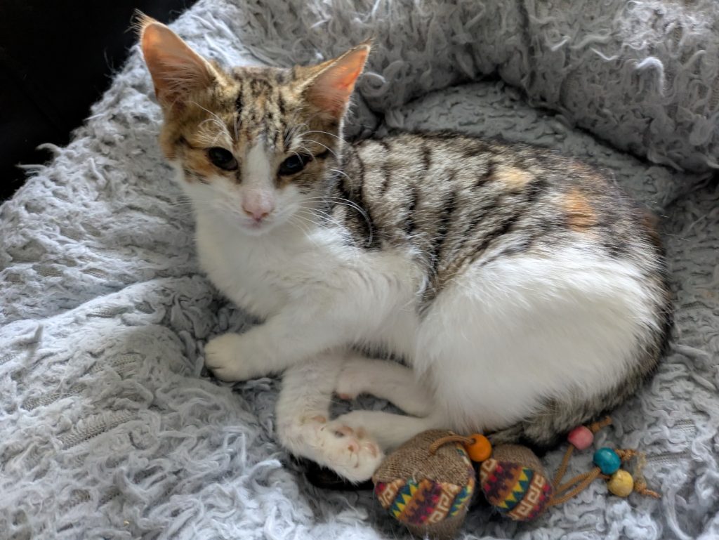 Bramble is a sweet 9-week-old boy who loves nothing more than cuddling up for a snooze. He’s playful, fully litter trained, and comfortable with being handled. With his gentle nature and love of affection, he’ll make a lovely companion in his new home.