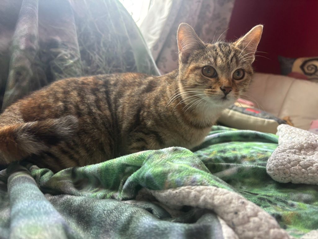 This adorable three-month-old female kitten is eager to find her forever family. She’s incredibly friendly and fully litter trained, ready to bring joy and companionship to a loving home.