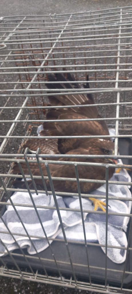 A buzzard was struck by a car on the Roscommon–Tulsk road, suffering a broken wing. Thankfully, Anna and her partner came to its rescue, showing incredible kindness and quick thinking. They contacted Roscommon SPCA, and arrangements were swiftly made with Kildare Wildlife Rescue.