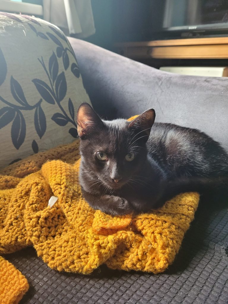Looking for love? So is this gentle little soul. This five-month-old neutered male kitten is on the hunt for a forever home. He may be a bit shy at first, but give him a moment—and you’ll discover a playful, affectionate cuddlebug with a purr that never quits.
